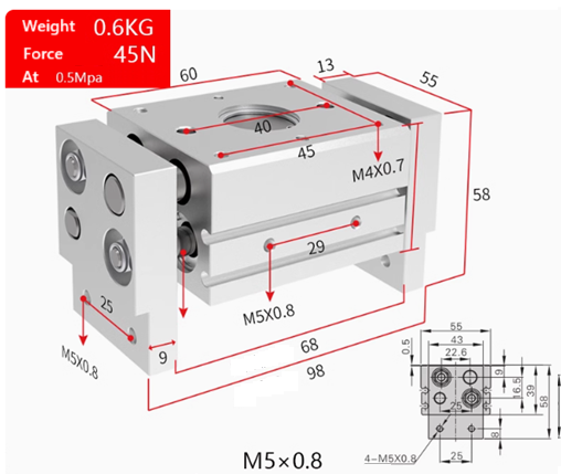 Áp suất khí nén tối đa của xi lanh tác động kép là 0.1Mpa đến 0.6Mpa
