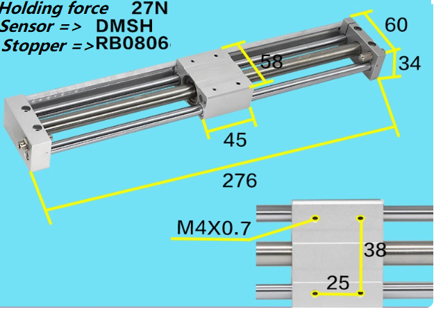 1. Xi lanh từ này về cơ bản là xi lanh khí nén không thanh có piston di động được lắp nam châm hình khuyên.