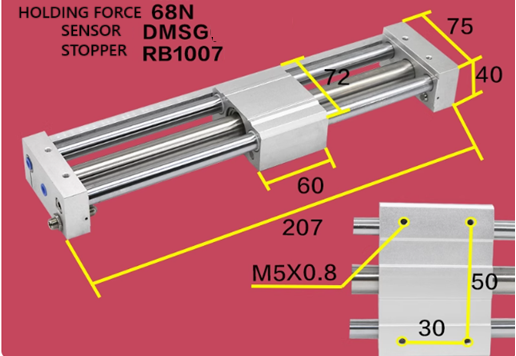 1. Xi lanh từ này về cơ bản là xi lanh khí nén không thanh có piston di động được lắp nam châm hình khuyên.