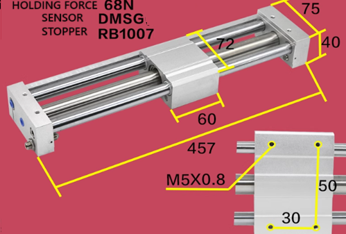 1. Xi lanh từ này về cơ bản là xi lanh khí nén không thanh có piston di động được lắp nam châm hình khuyên.