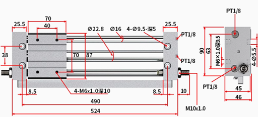 4. Các thanh cản cao su không thể điều chỉnh và đệm khí nén có thể điều chỉnh ở cả hai đầu của xi lanh đảm bảo hoạt động trơn tru. Nếu sử dụng bộ giảm xóc, hiệu ứng đệm sẽ lớn hơn.